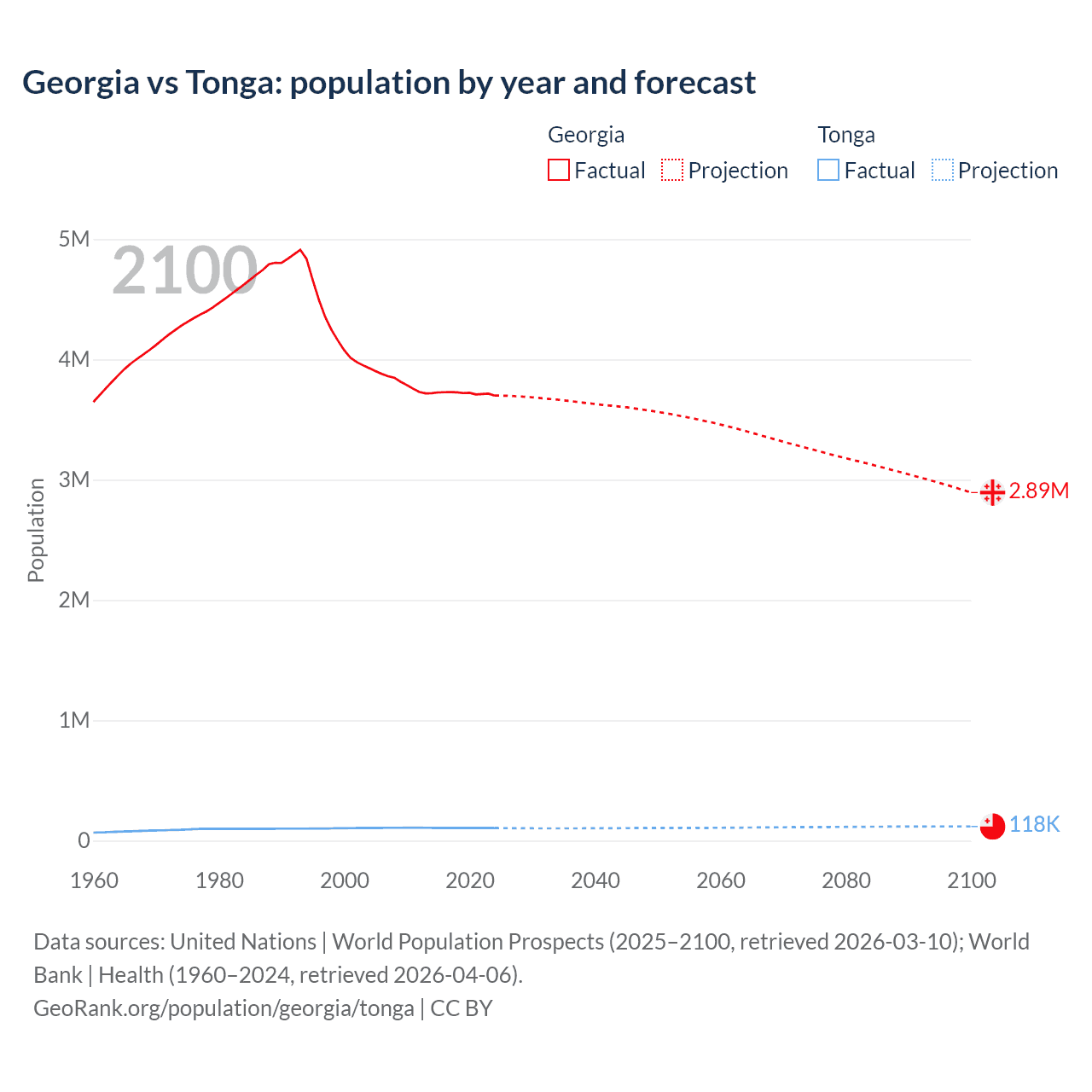 Georgia vs Tonga: population by year and forecast