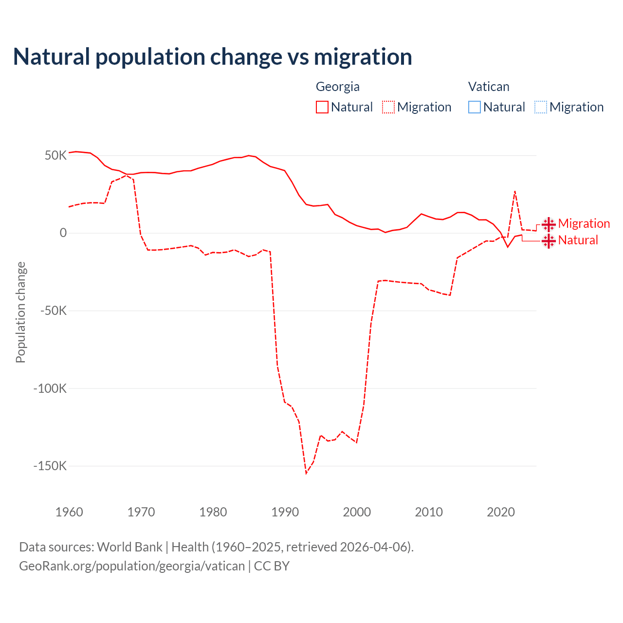 - For the last 10 years, Georgia has had an average growth rate of -0.04% per year vs +1.9% in the Vatican.