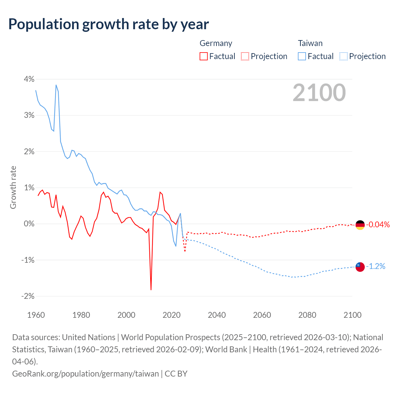 Data sources: World Bank | Health (1960–2024, retrieved 2026-04-06); United Nations | World Population Prospects (1960–2026, retrieved 2026-03-10); U.S. Census Bureau (1960–2025, retrieved 2026-02-08); National Statistics, Taiwan (1960–2025, retrieved 2026-02-09); Central Intelligence Agency (CIA) (2000–2019, retrieved 2026-02-20).