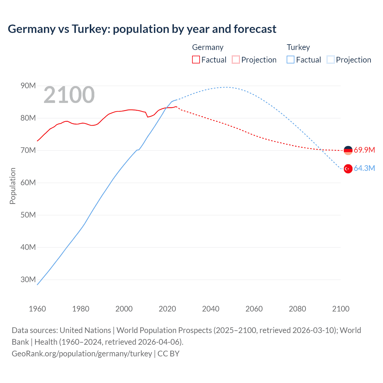 Germany vs Turkey: population by year and forecast