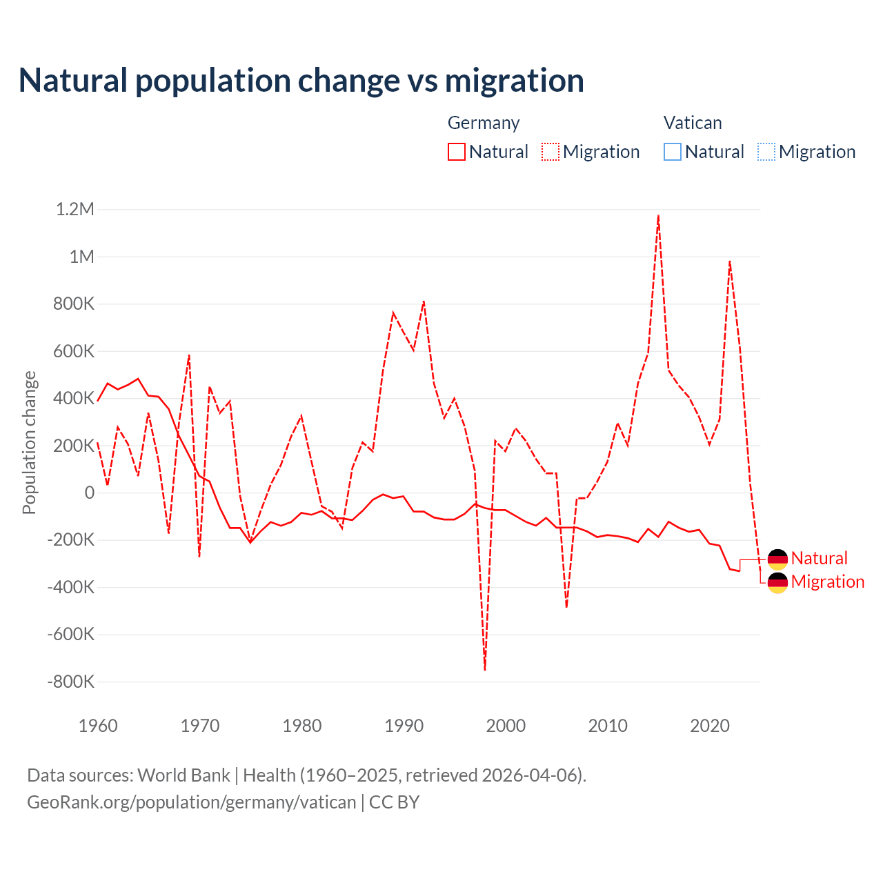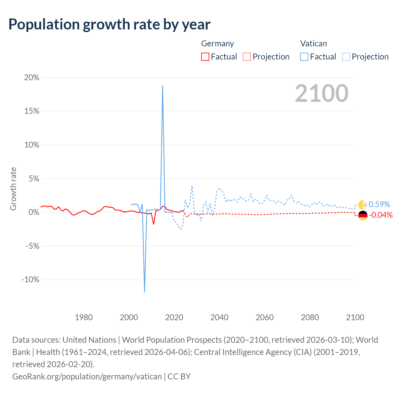 - For the last 10 years, Germany has had an average growth rate of +0.32% per year vs +1.9% in the Vatican.