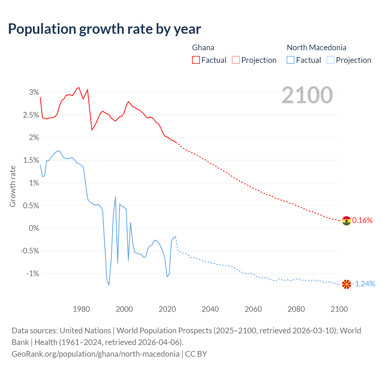 Ghana vs North Macedonia: population by year and forecast