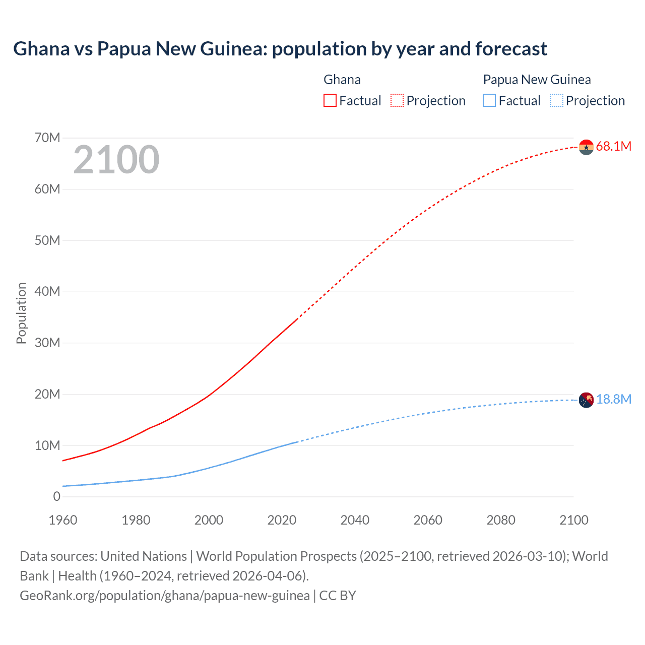 Ghana vs Papua New Guinea: population by year and forecast