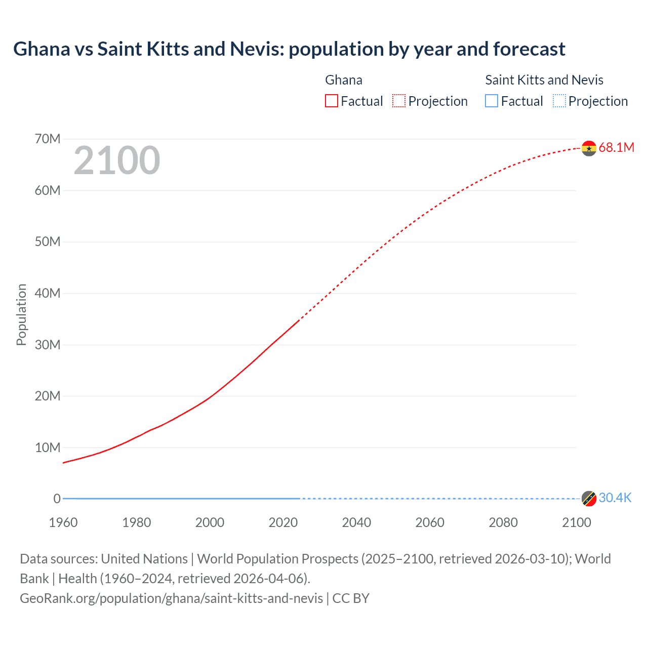 Ghana vs Saint Kitts and Nevis: population by year and forecast