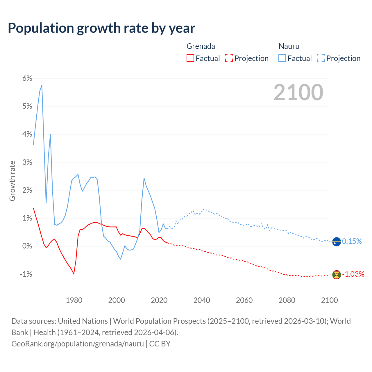 Grenada vs Nauru: population by year and forecast