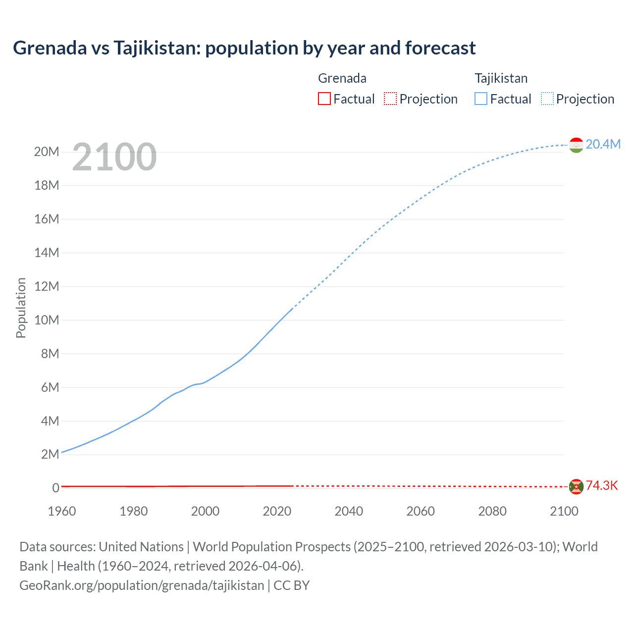 - Tajikistan's population is 94 times bigger than Grenada's.