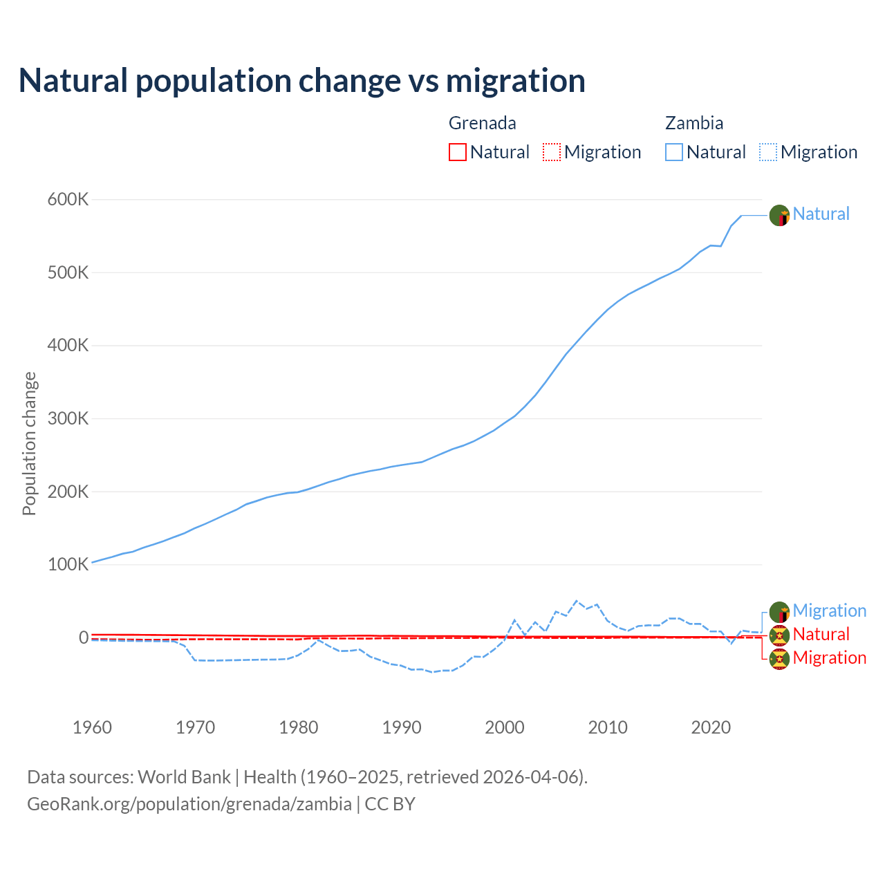 Population differences between Grenada and Zambia