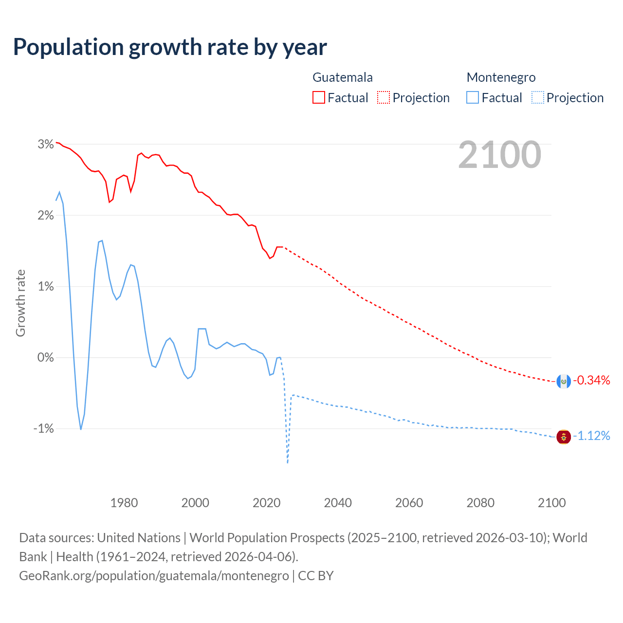 Guatemala vs Montenegro: population by year and forecast
