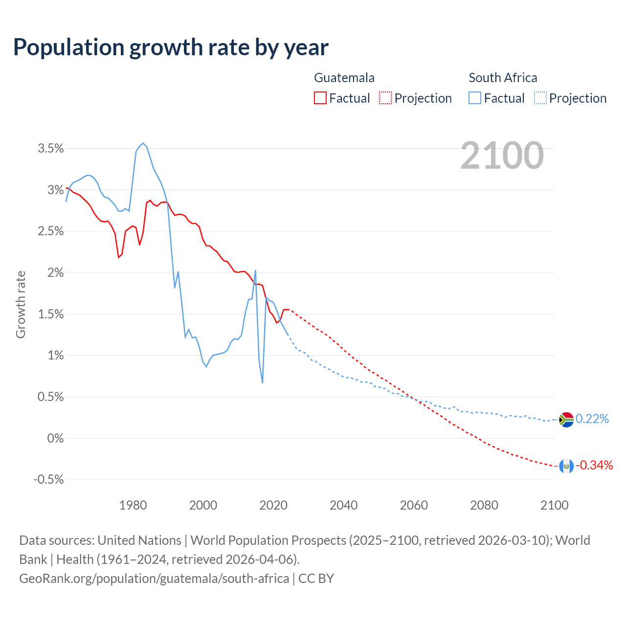 Data sources: World Bank | Health (1960–2024, retrieved 2026-04-06); United Nations | World Population Prospects (1960–2026, retrieved 2026-03-10); U.S. Census Bureau (1960–2025, retrieved 2026-02-08); Central Intelligence Agency (CIA) (2000–2019, retrieved 2026-02-20).