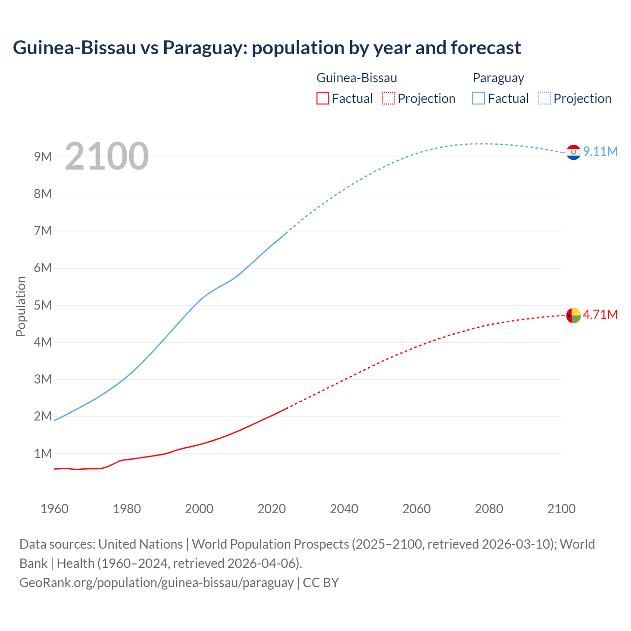 Guinea-Bissau vs Paraguay: population by year and forecast