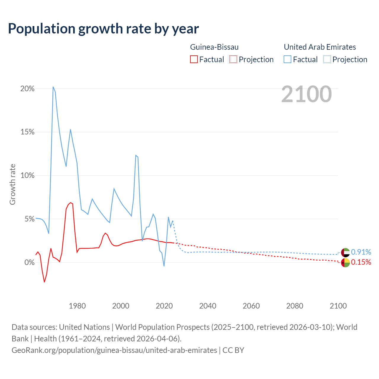 - For the last 10 years, Guinea-Bissau has had an average growth rate of +2.4% per year vs +3.31% in the United Arab Emirates.