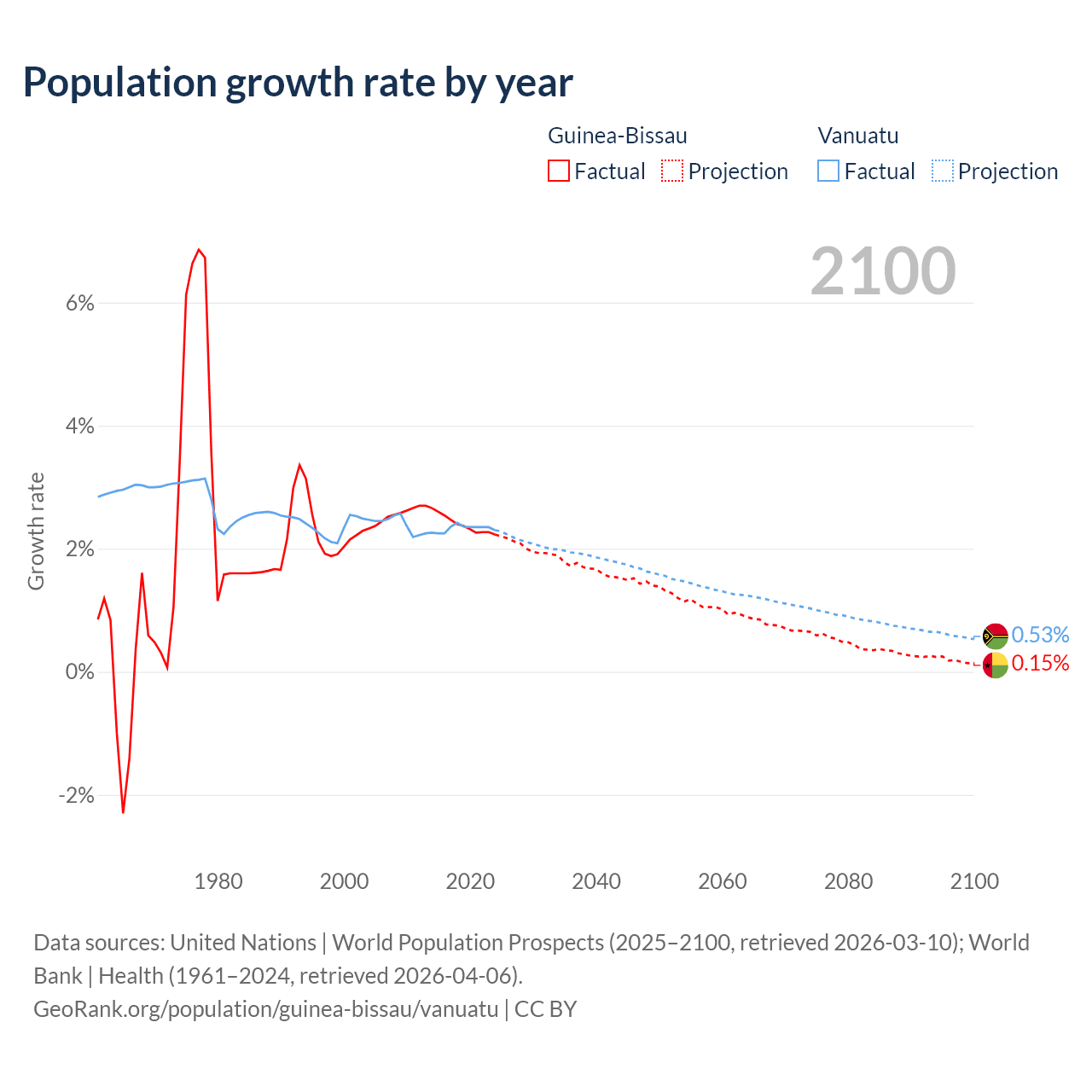 Guinea-Bissau vs Vanuatu: population by year and forecast