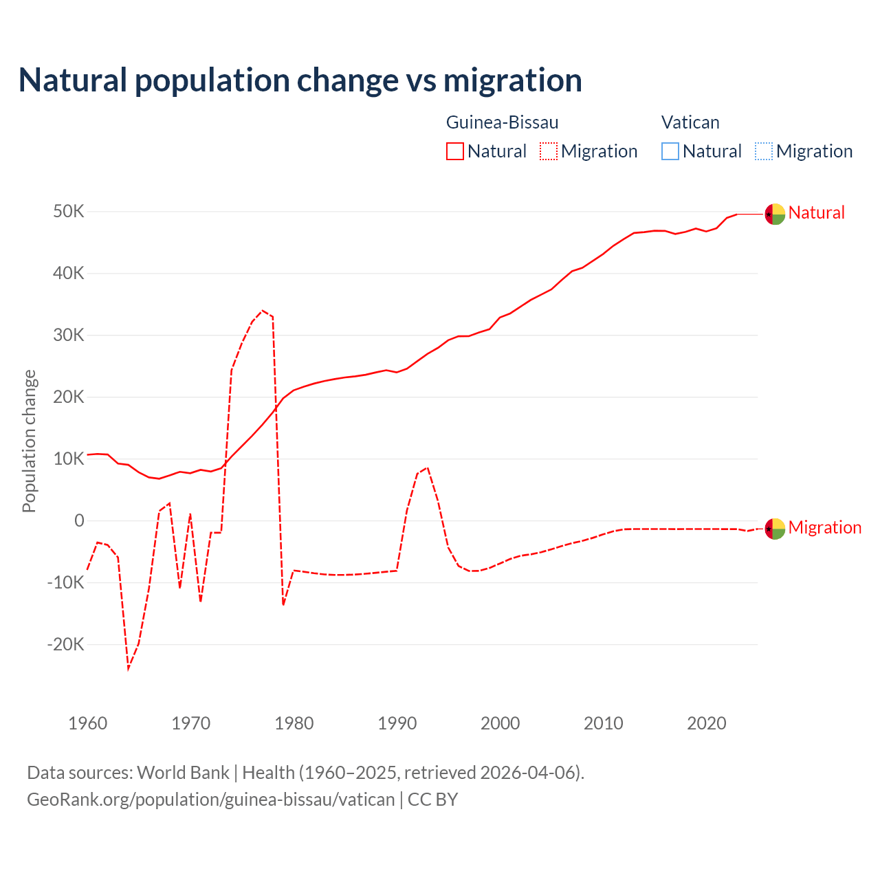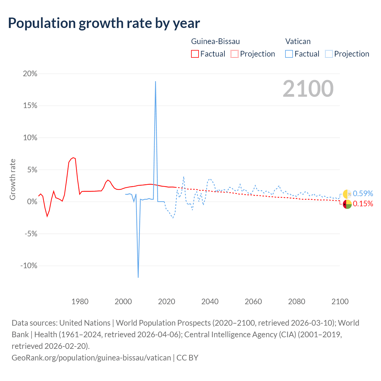 - For the last 10 years, Guinea-Bissau has had an average growth rate of +2.4% per year vs +1.9% in the Vatican.