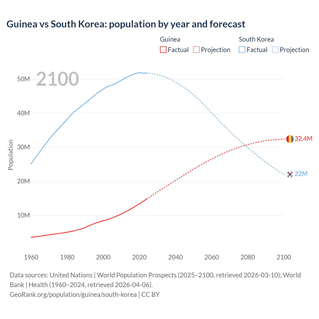 Population differences between Guinea and South Korea