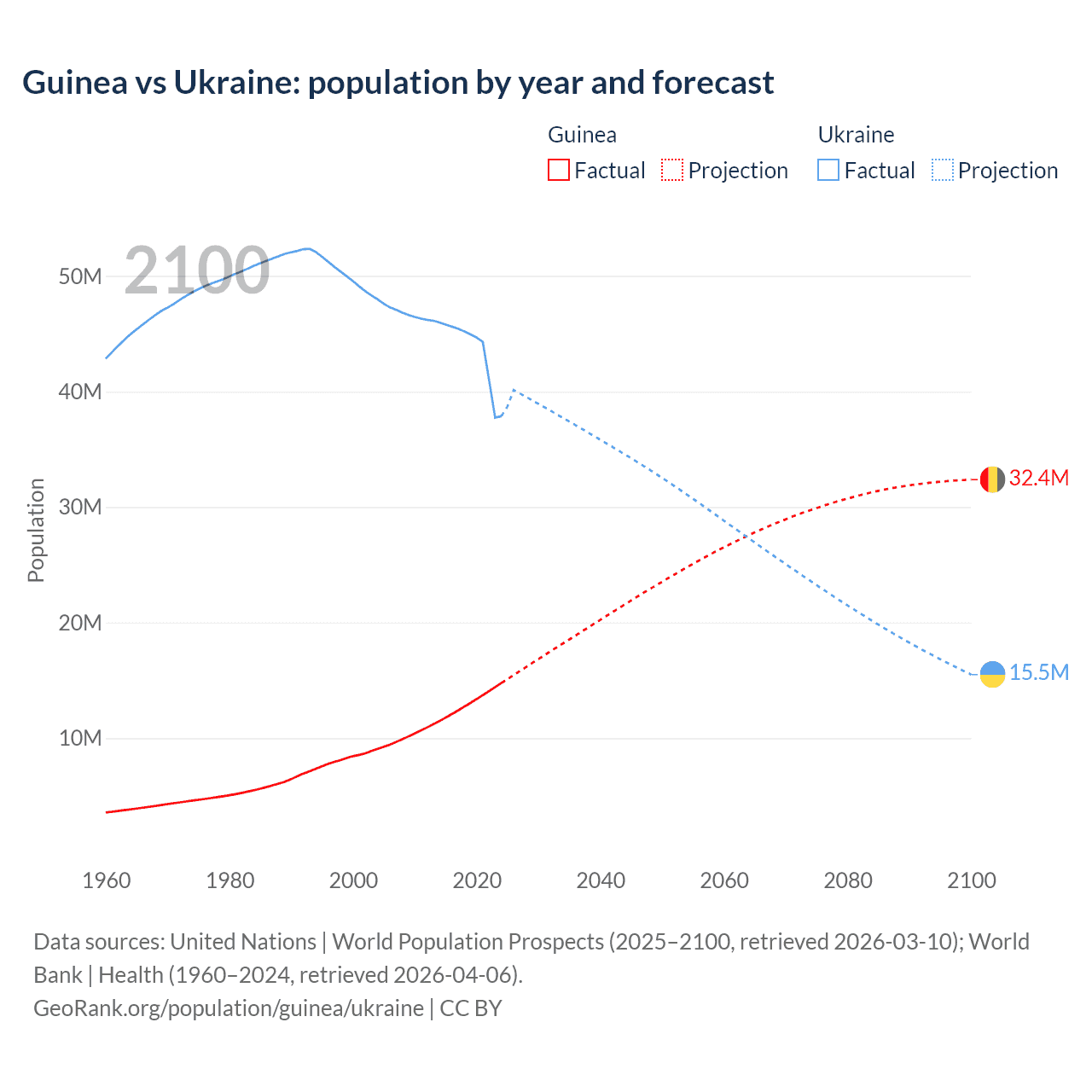 Population differences between Guinea and Ukraine