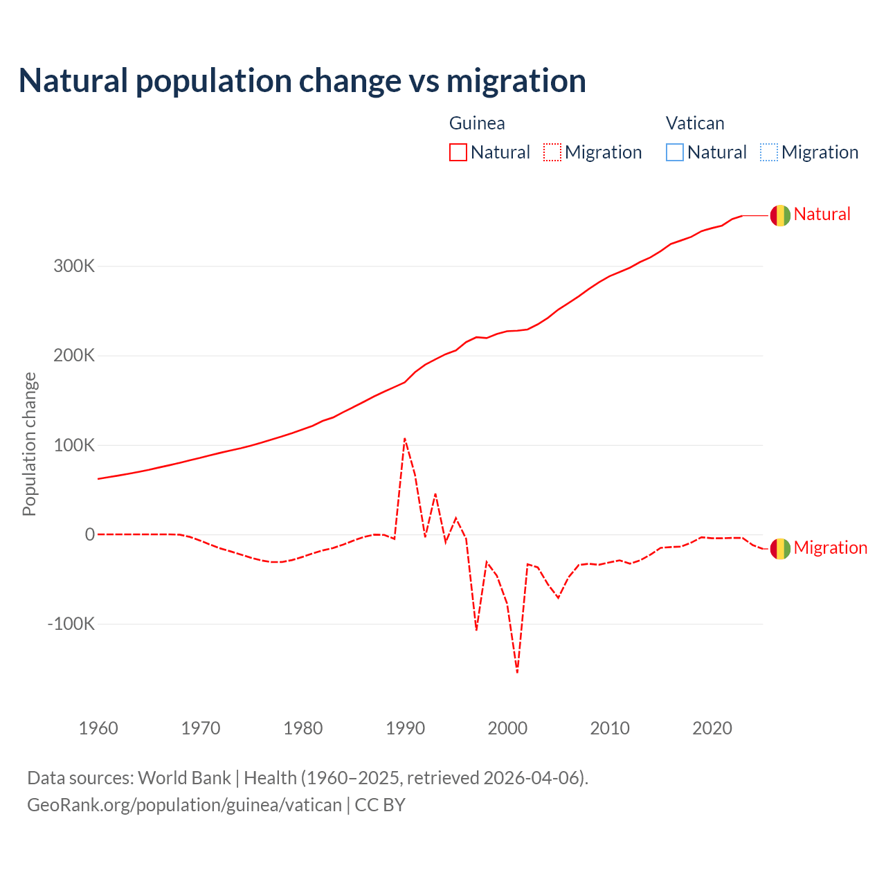 - For the last 10 years, Guinea has had an average growth rate of +2.54% per year vs +1.9% in the Vatican.
