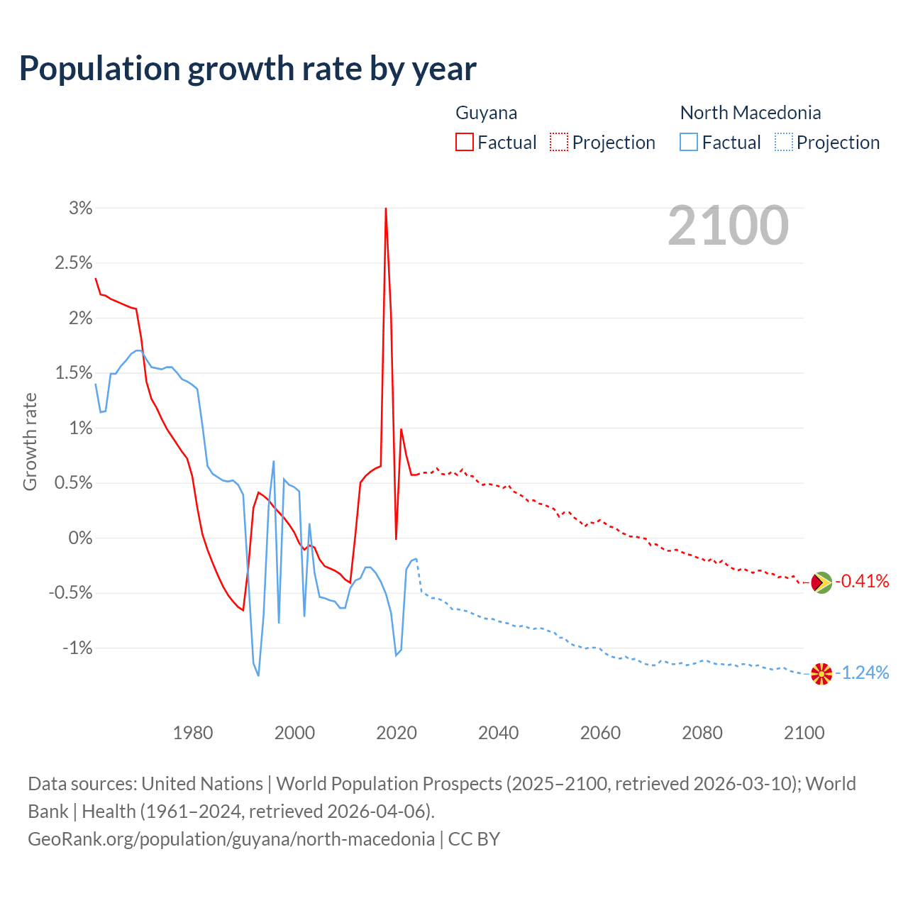 Guyana vs North Macedonia: population by year and forecast