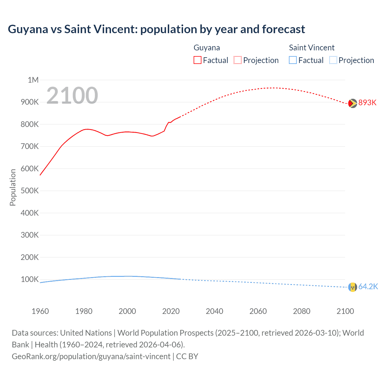 Guyana vs Saint Vincent: population by year and forecast
