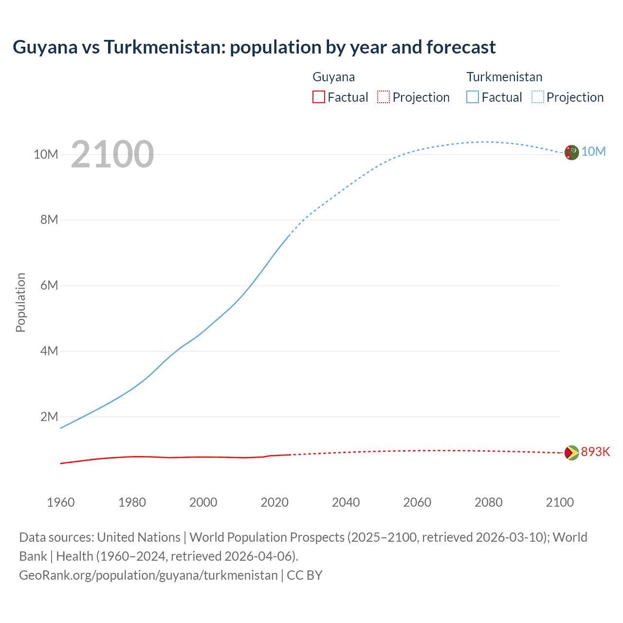 Guyana vs Turkmenistan: population by year and forecast