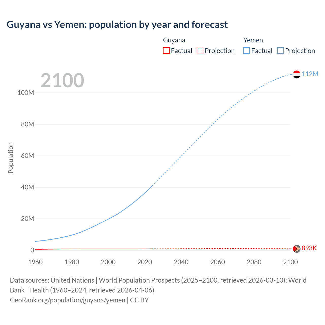 Guyana vs Yemen: population by year and forecast