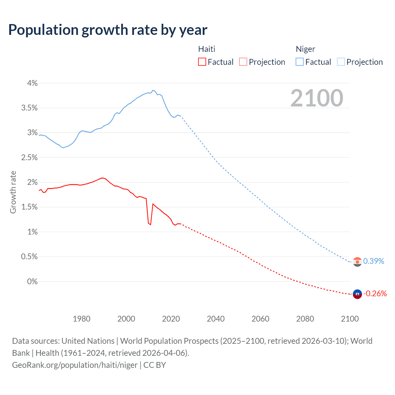 - For the last 10 years, Haiti has had an average growth rate of +1.29% per year vs +3.5% in Niger.
