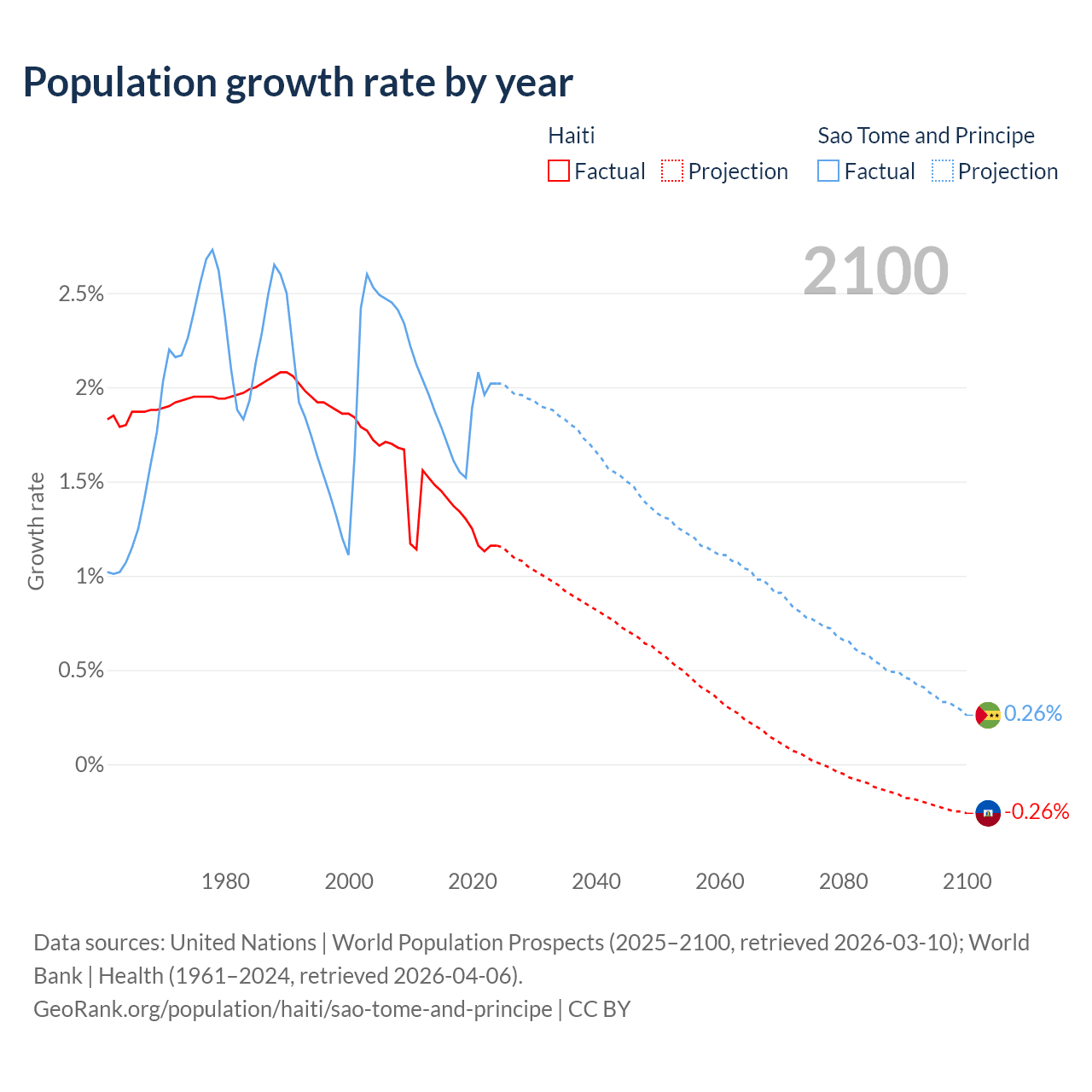 Haiti vs Sao Tome and Principe: population by year and forecast