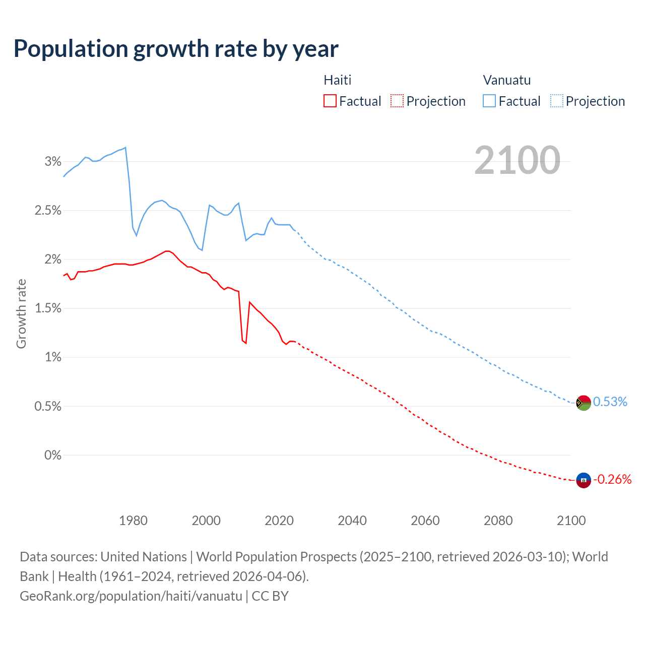 Haiti vs Vanuatu: population by year and forecast