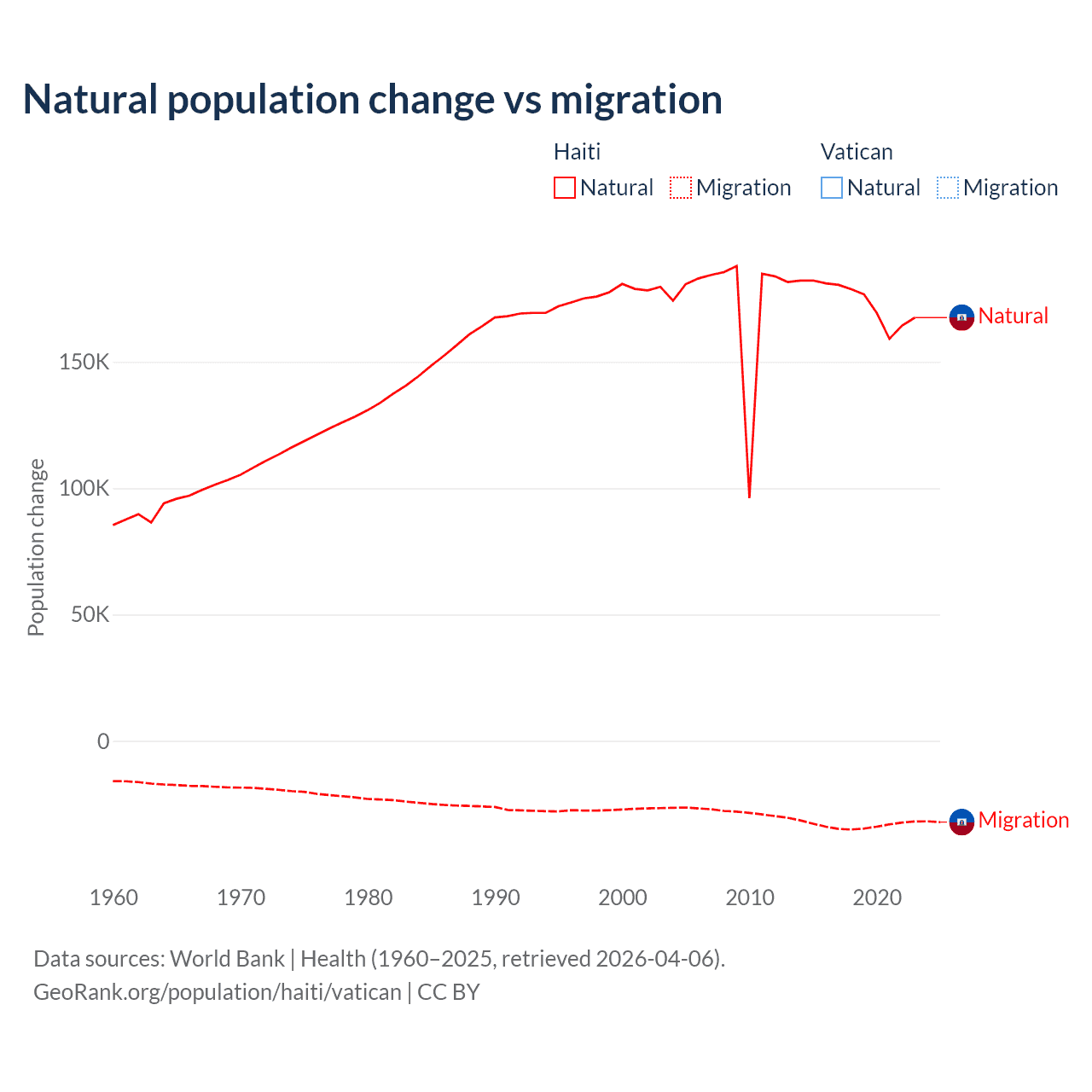 - For the last 10 years, Haiti has had an average growth rate of +1.29% per year vs +1.9% in the Vatican.