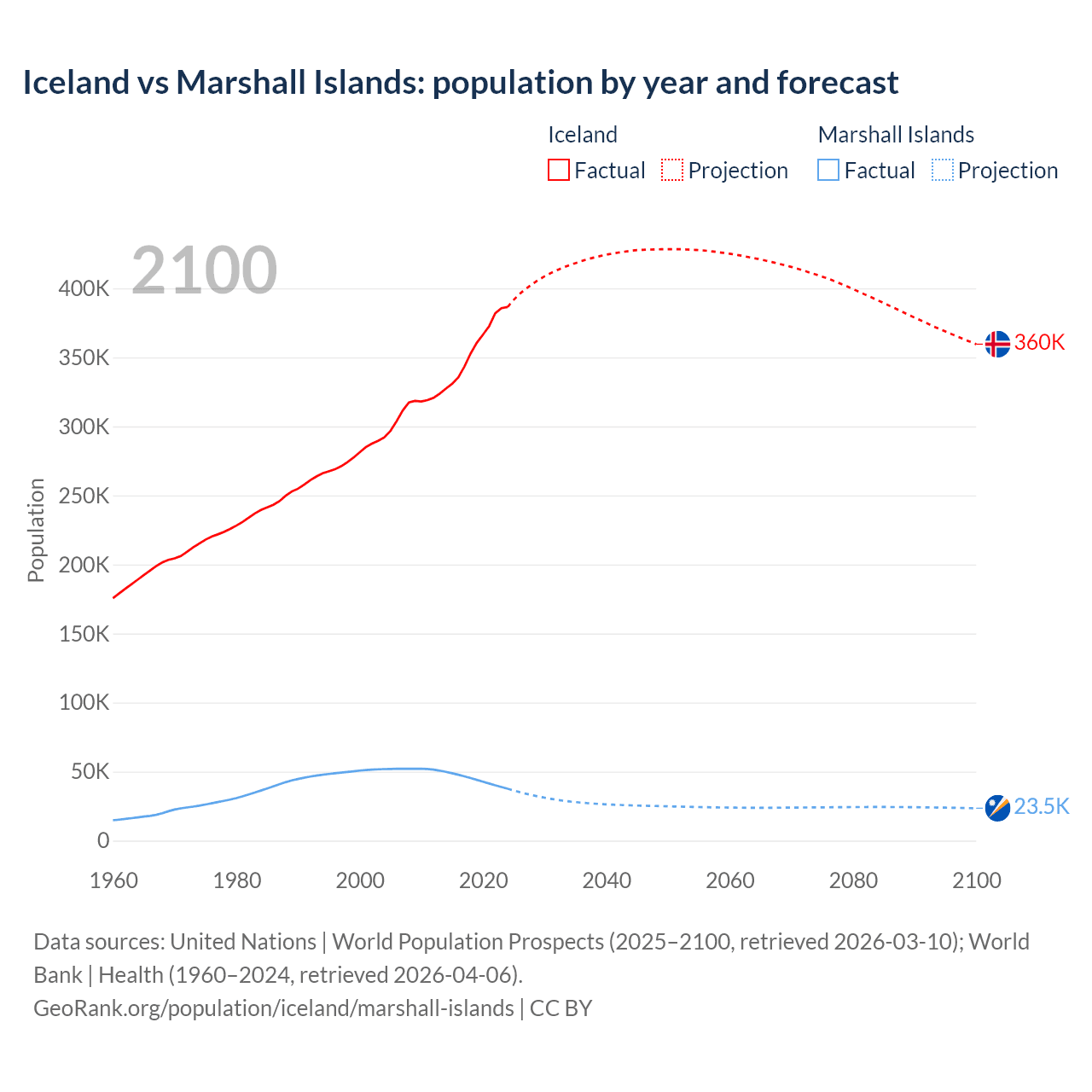 Iceland vs Marshall Islands: population by year and forecast