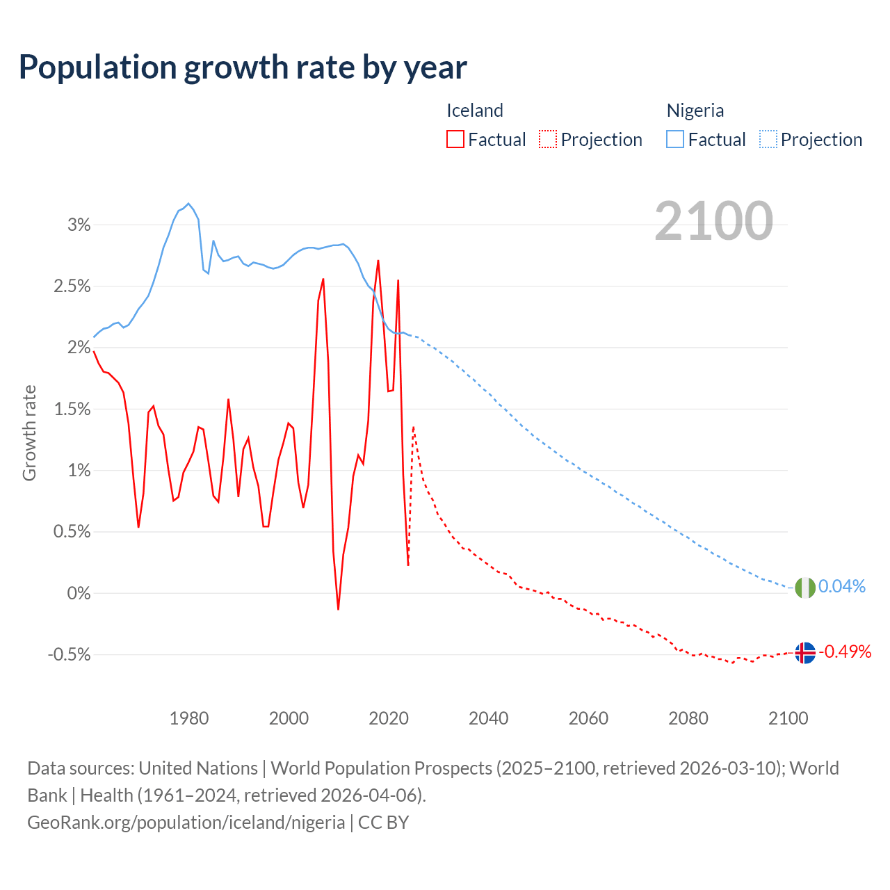 Iceland vs Nigeria: population by year and forecast