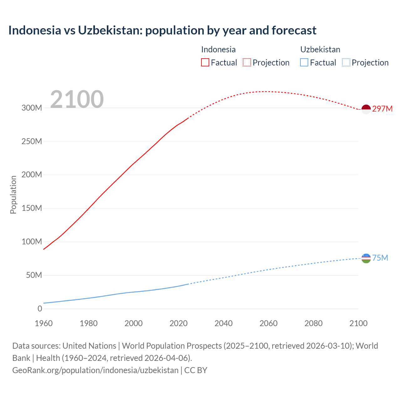 Indonesia vs Uzbekistan: population by year and forecast