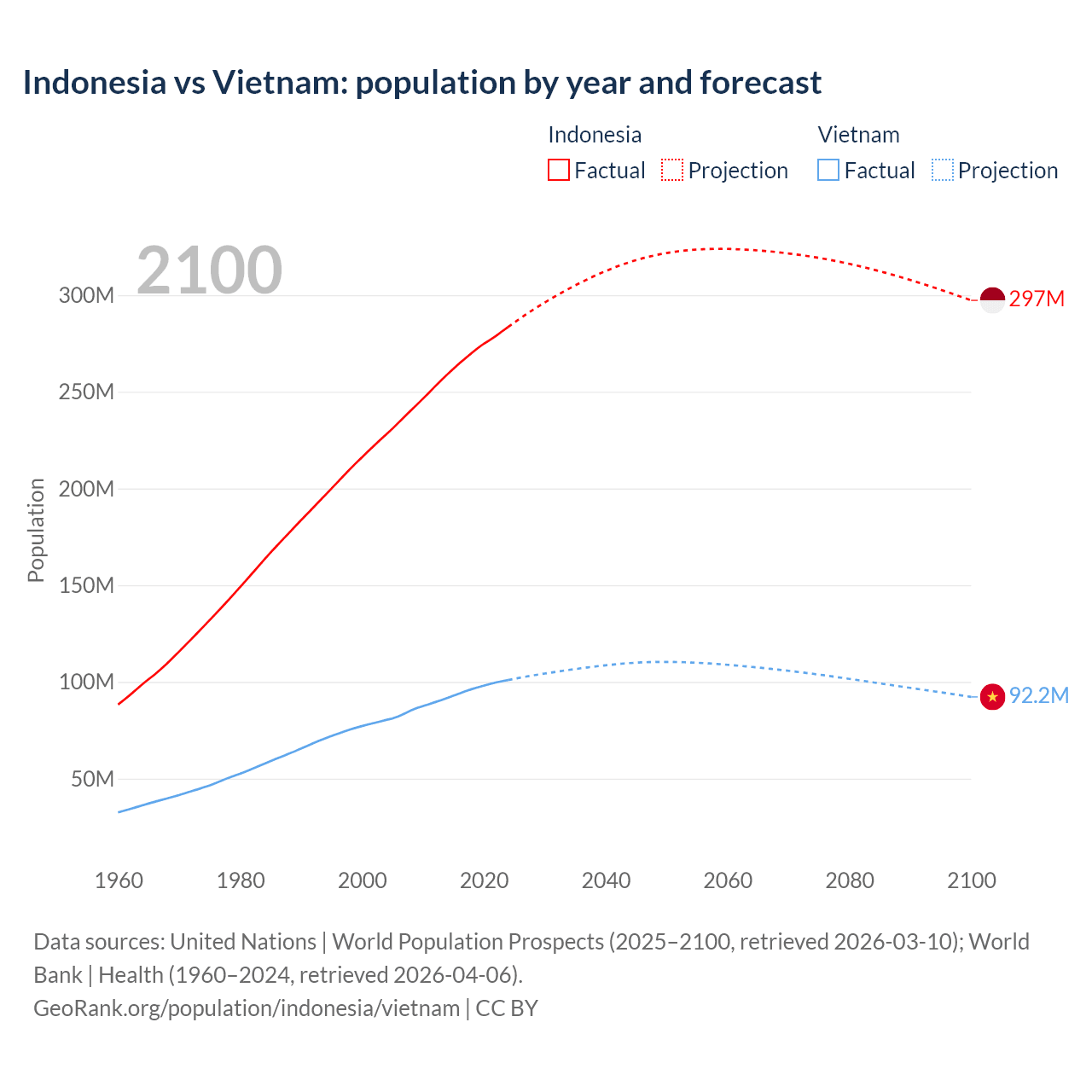 Indonesia vs Vietnam: population by year and forecast