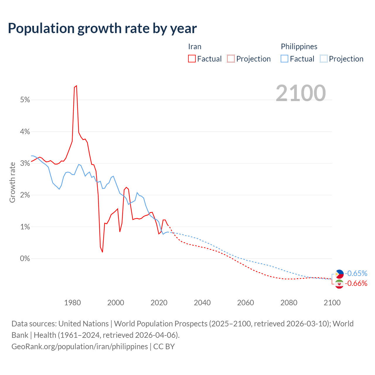 Data sources: World Bank | Health (1960–2024, retrieved 2026-04-06); United Nations | World Population Prospects (1960–2026, retrieved 2026-03-10); U.S. Census Bureau (1960–2025, retrieved 2026-02-08); Central Intelligence Agency (CIA) (2000–2019, retrieved 2026-02-20).