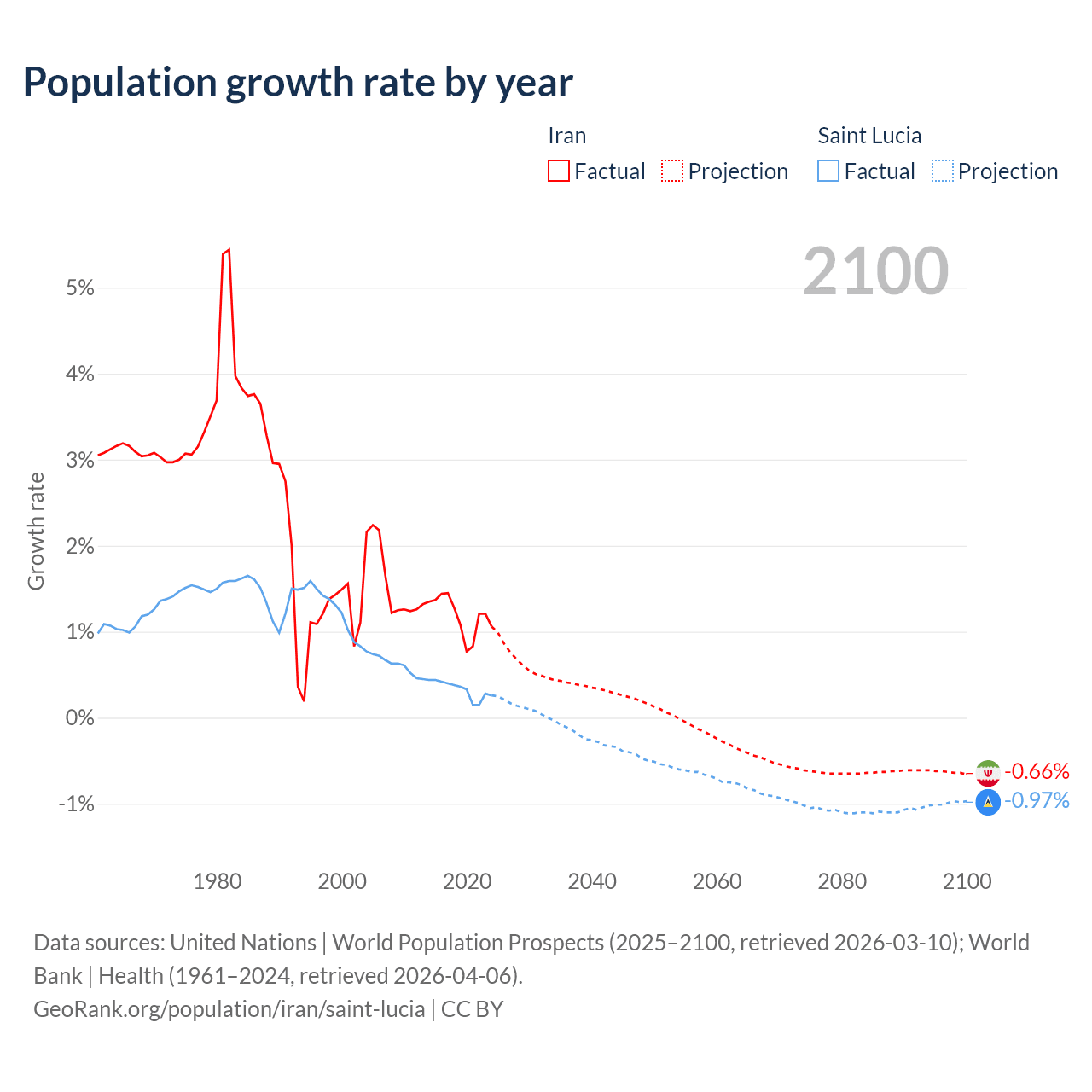 Iran vs Saint Lucia: population by year and forecast
