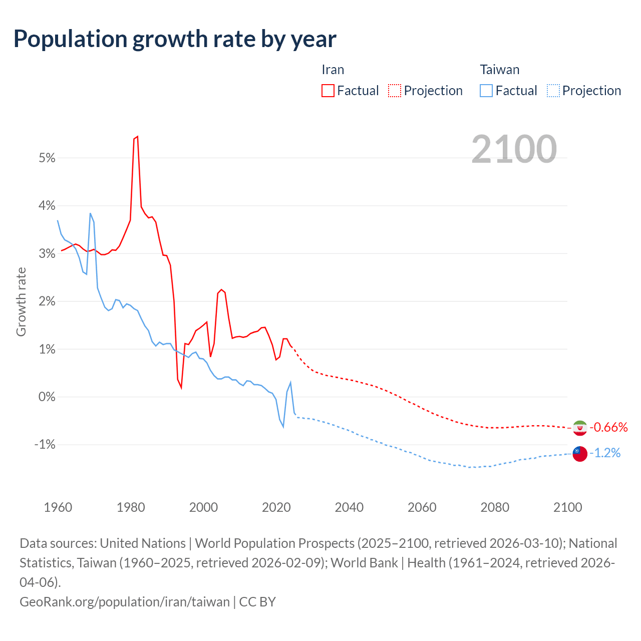 Data sources: World Bank | Health (1960–2024, retrieved 2026-04-06); United Nations | World Population Prospects (1960–2026, retrieved 2026-03-10); U.S. Census Bureau (1960–2025, retrieved 2026-02-08); National Statistics, Taiwan (1960–2025, retrieved 2026-02-09); Central Intelligence Agency (CIA) (2000–2019, retrieved 2026-02-20).
