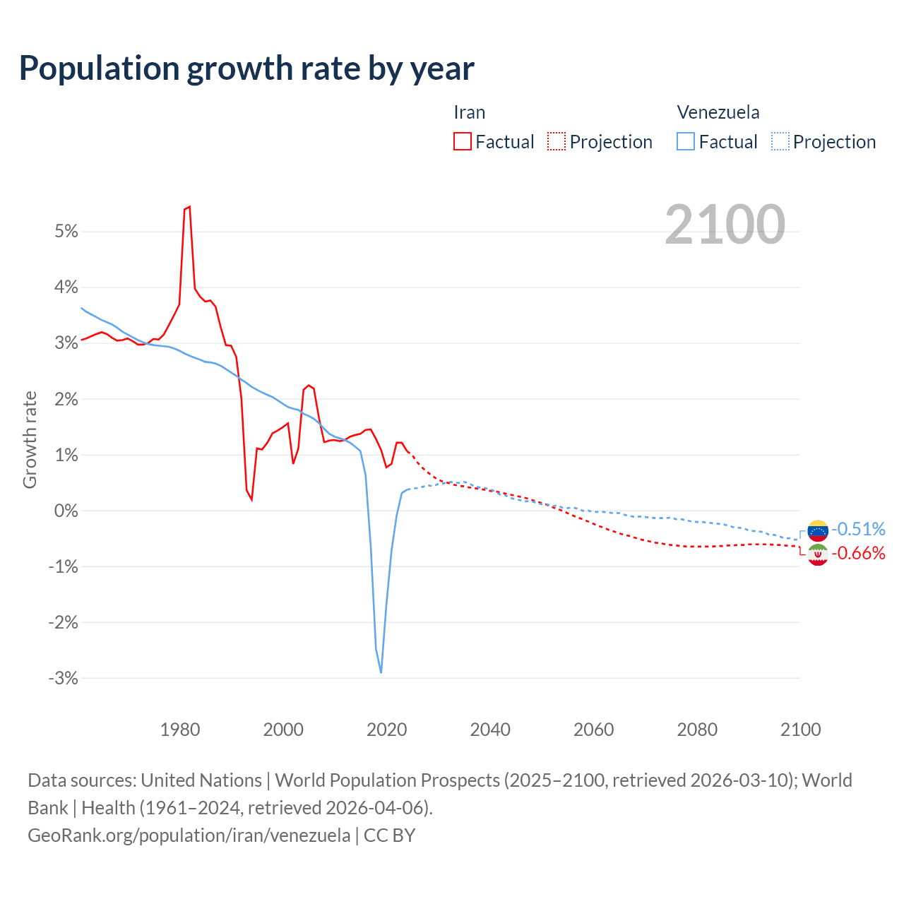 Data sources: World Bank | Health (1960–2024, retrieved 2026-04-06); United Nations | World Population Prospects (1960–2026, retrieved 2026-03-10); U.S. Census Bureau (1960–2025, retrieved 2026-02-08); Central Intelligence Agency (CIA) (2000–2019, retrieved 2026-02-20).