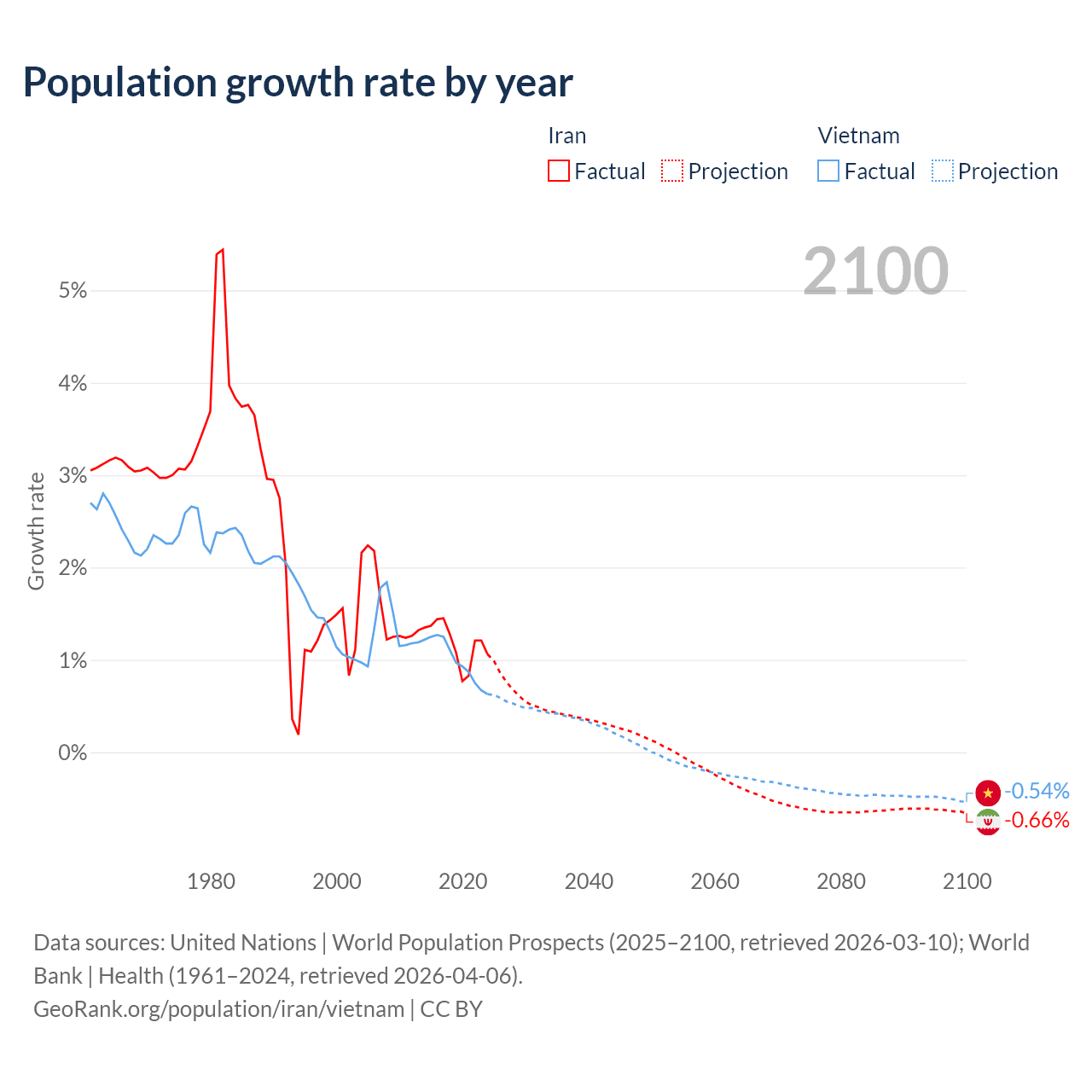 Iran vs Vietnam: population by year and forecast