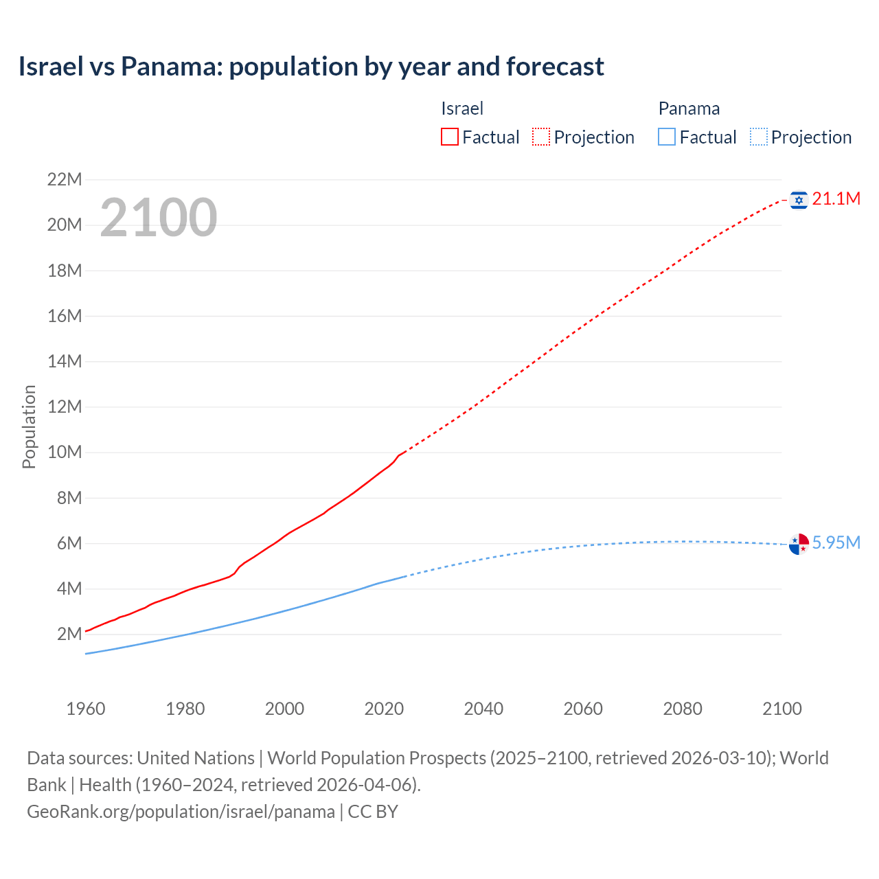 Israel vs Panama: population by year and forecast