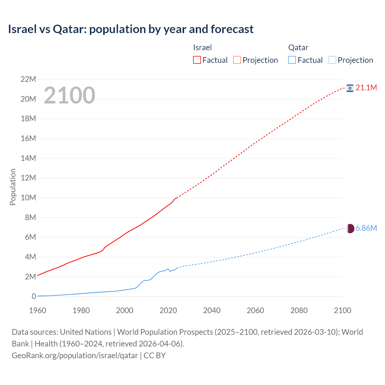 Israel vs Qatar: population by year and forecast