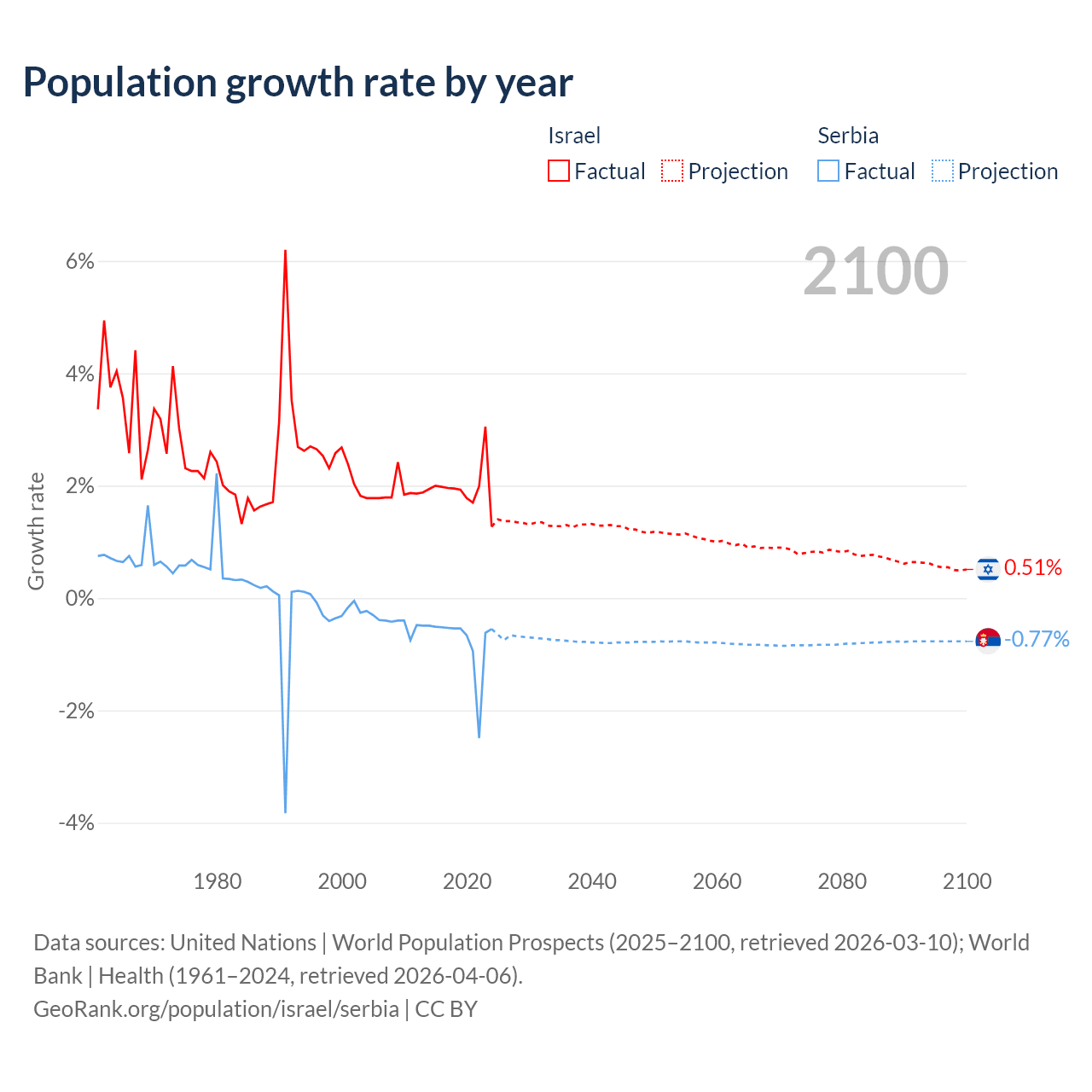 Israel vs Serbia: population by year and forecast