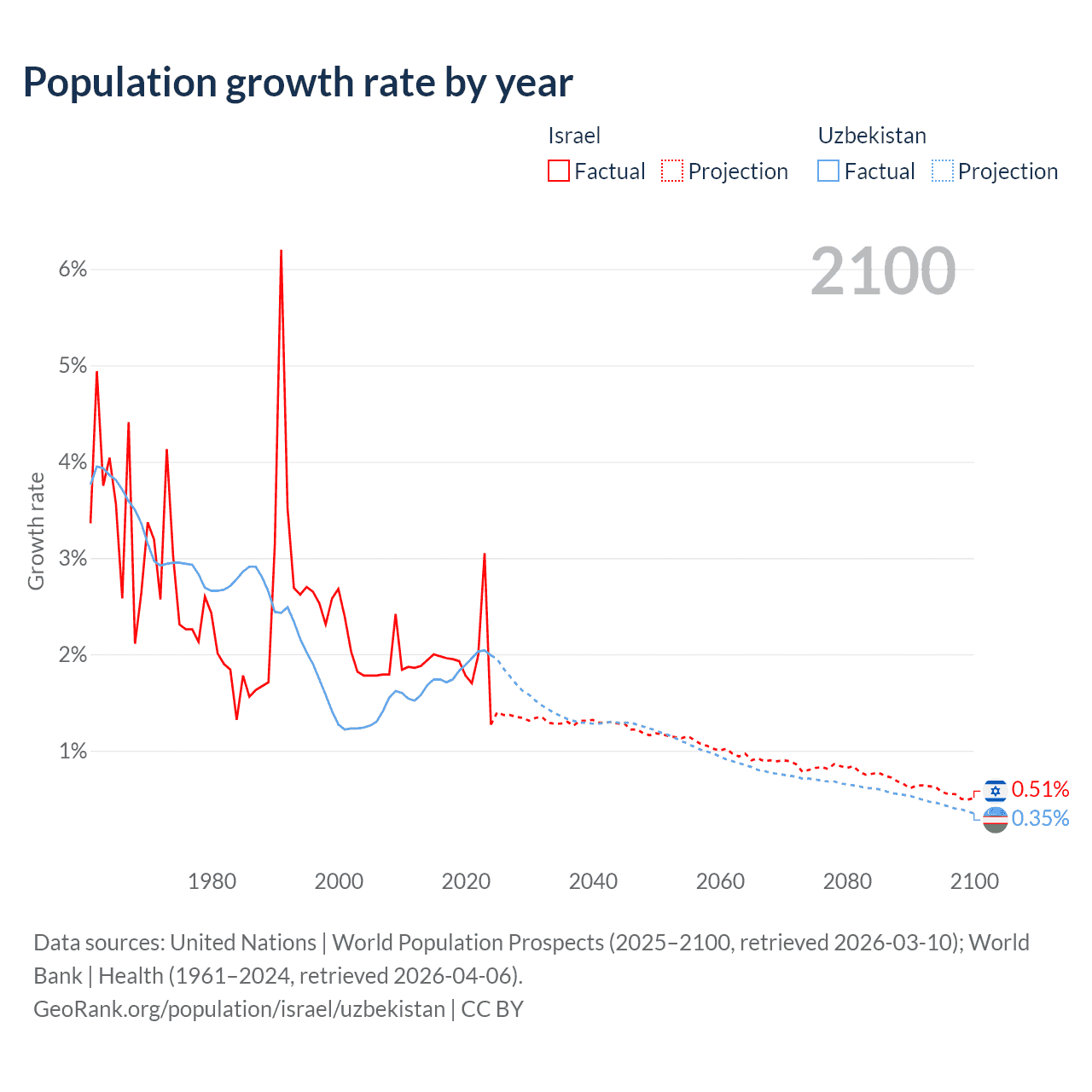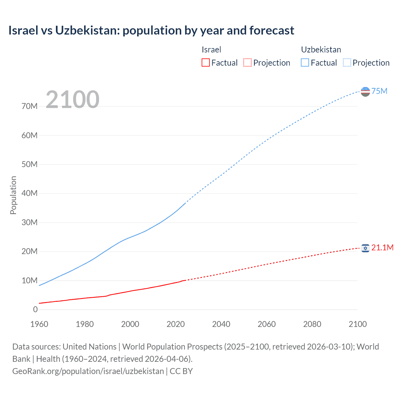 Israel vs Uzbekistan: population by year and forecast