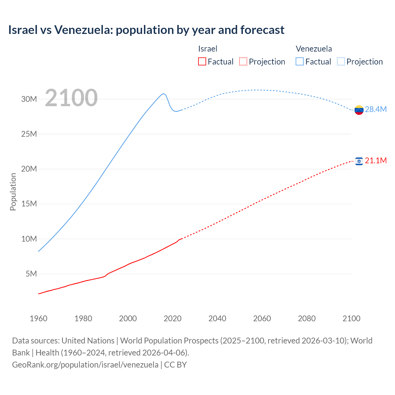 Israel vs Venezuela: population by year and forecast