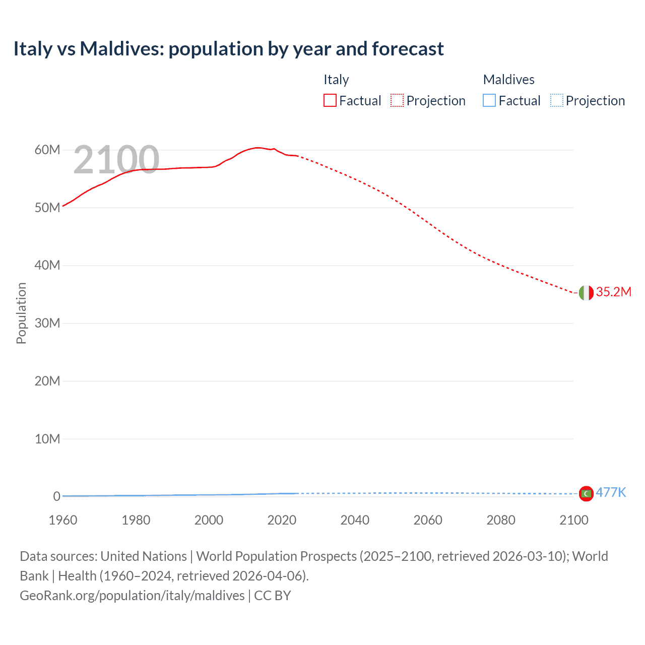 Population differences between Italy and Maldives