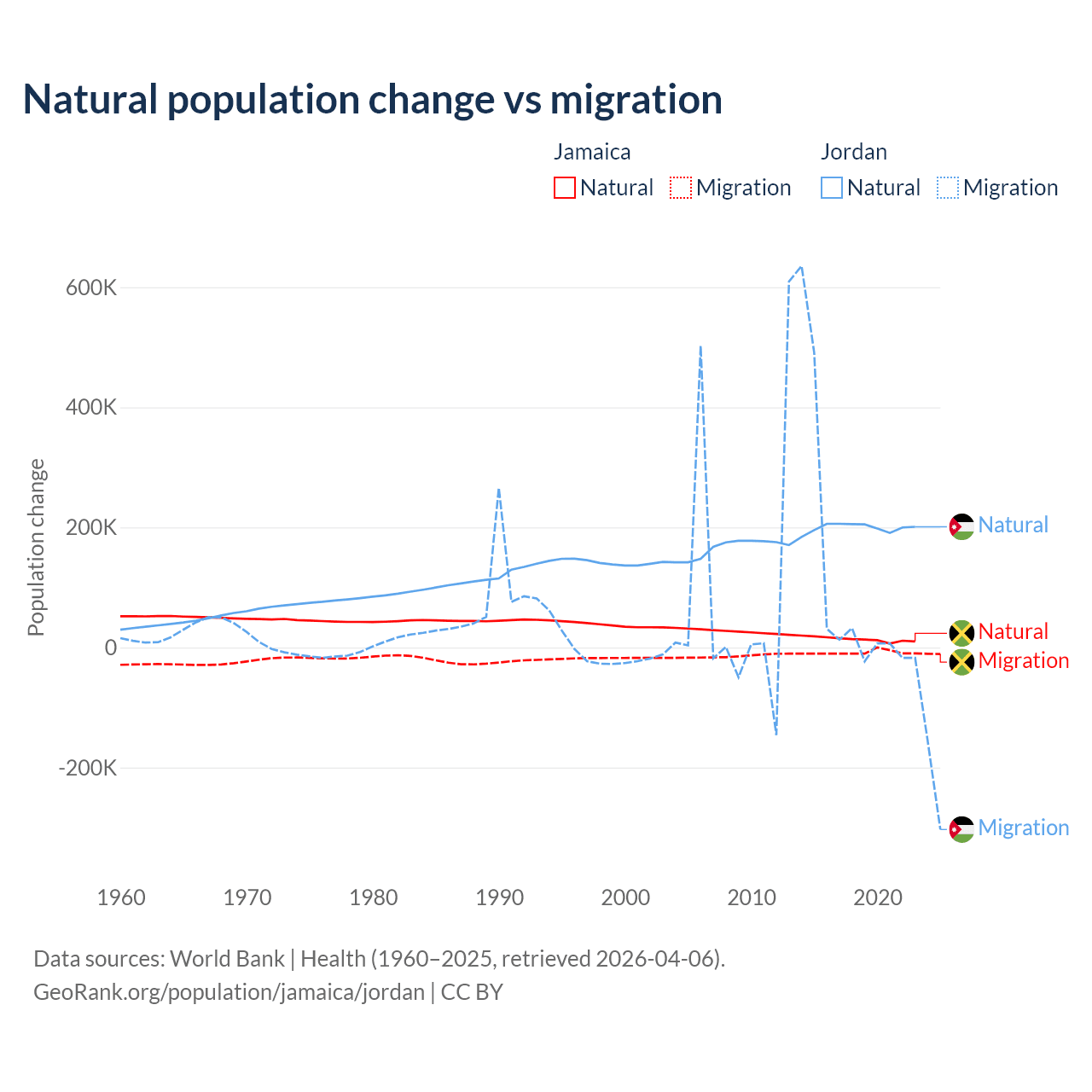 Population differences between Jamaica and Jordan