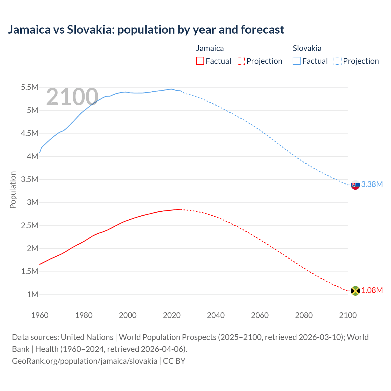 Jamaica vs Slovakia: population by year and forecast
