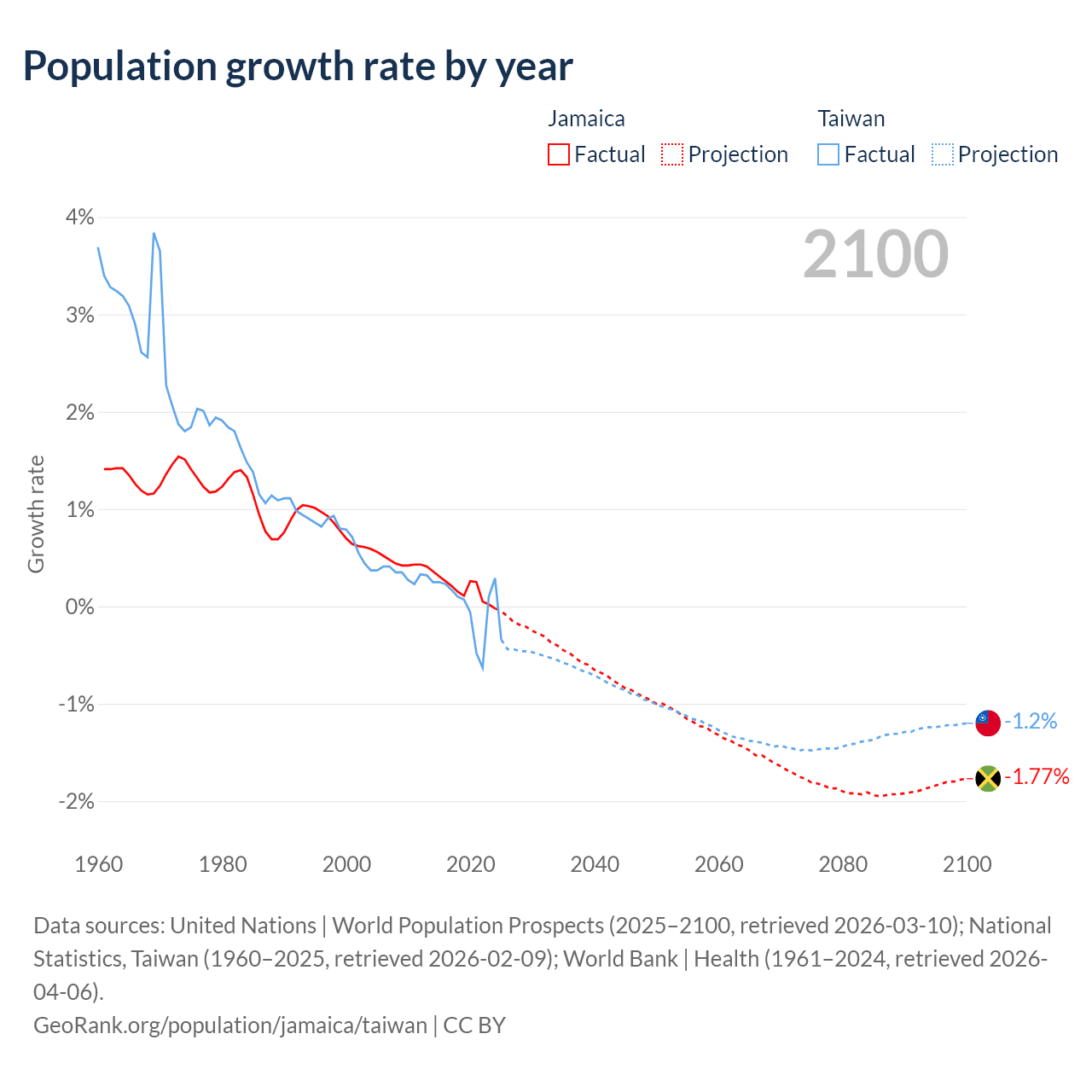 Data sources: World Bank | Health (1960–2024, retrieved 2026-04-06); United Nations | World Population Prospects (1960–2026, retrieved 2026-03-10); U.S. Census Bureau (1960–2025, retrieved 2026-02-08); National Statistics, Taiwan (1960–2025, retrieved 2026-02-09); Central Intelligence Agency (CIA) (2000–2019, retrieved 2026-02-20).