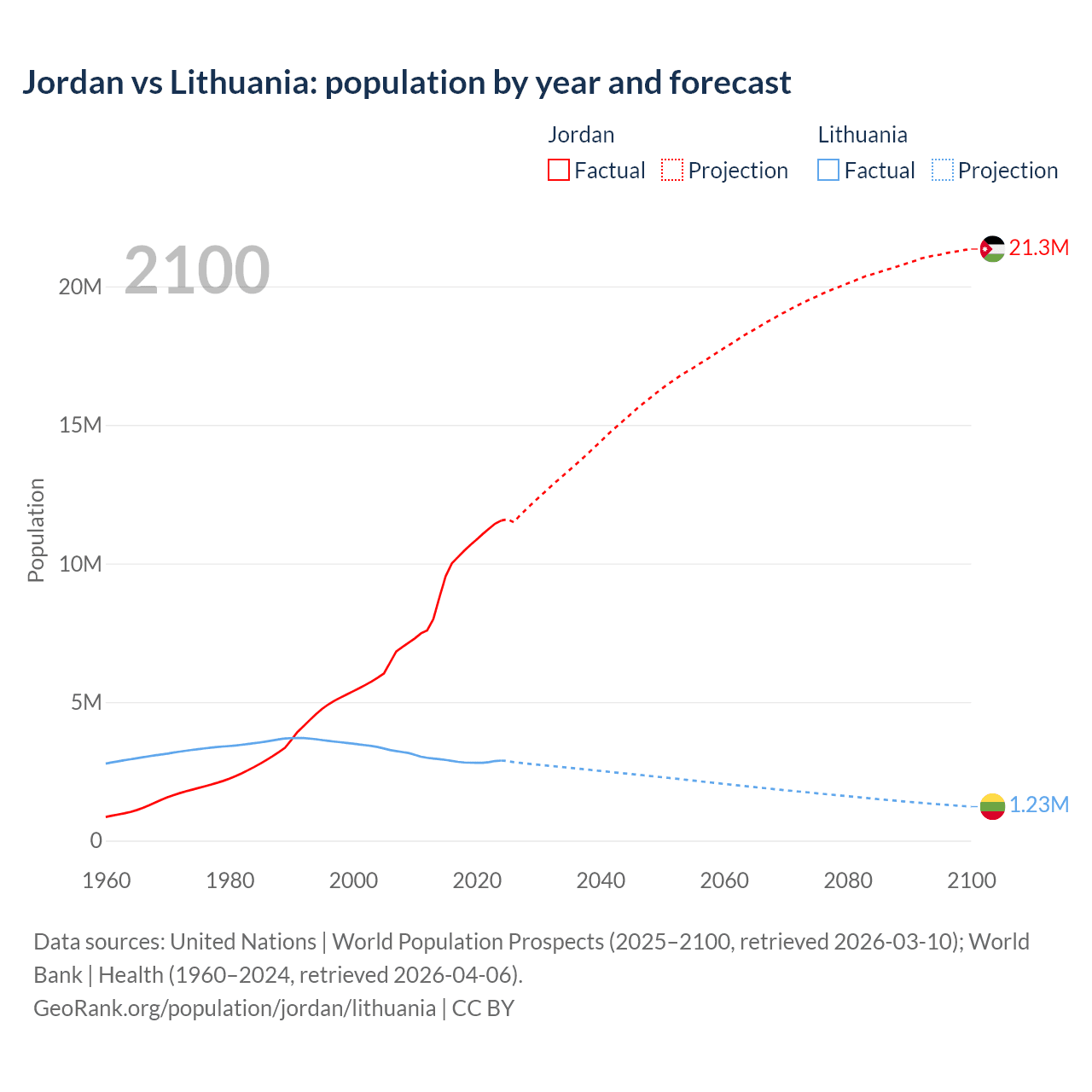 Population differences between Jordan and Lithuania