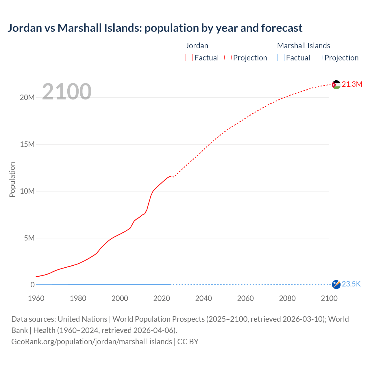 Jordan vs Marshall Islands: population by year and forecast
