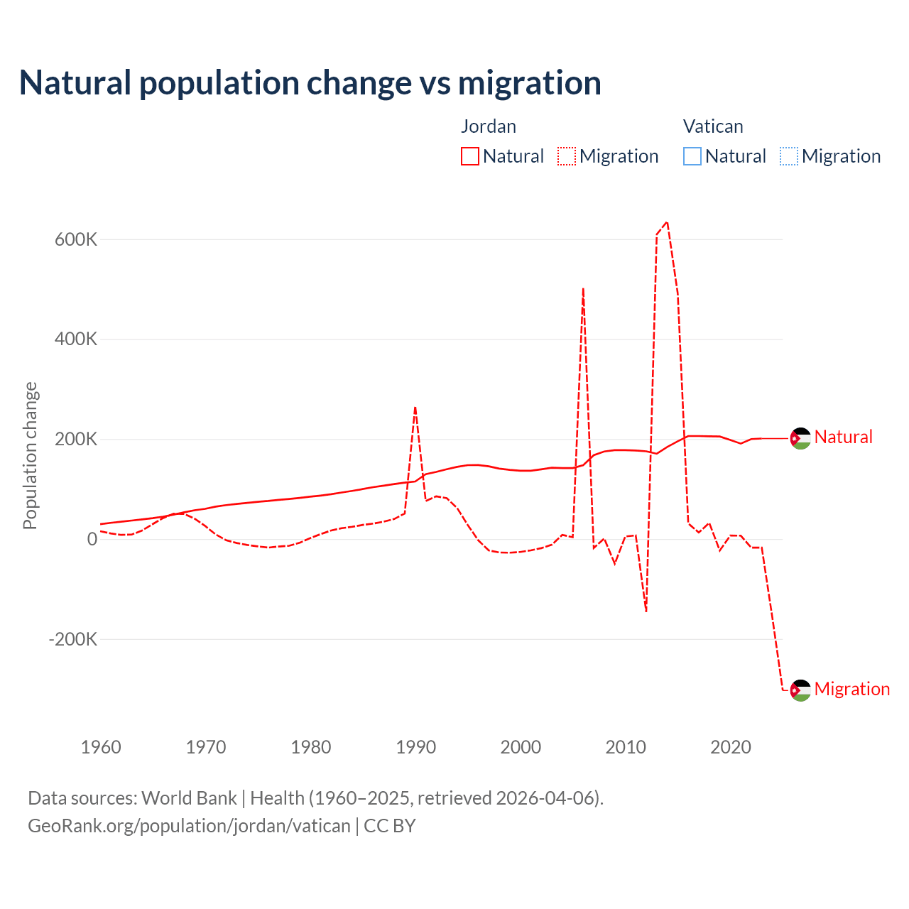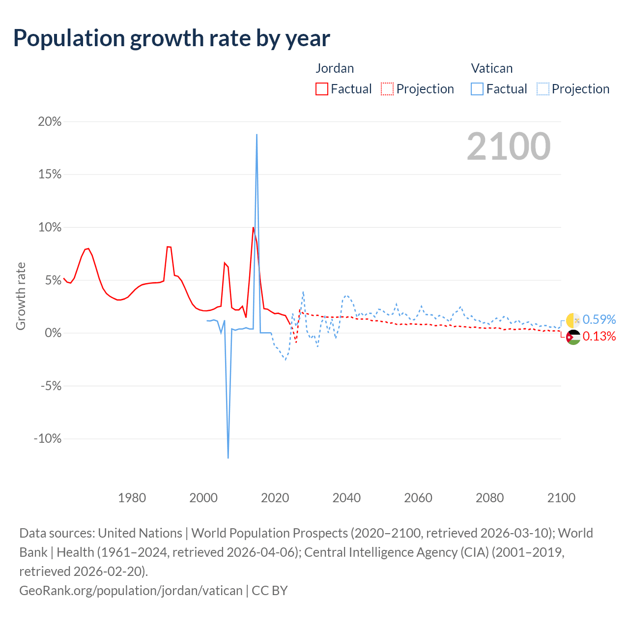 - For the last 10 years, Jordan has had an average growth rate of +3.45% per year vs +1.9% in the Vatican.