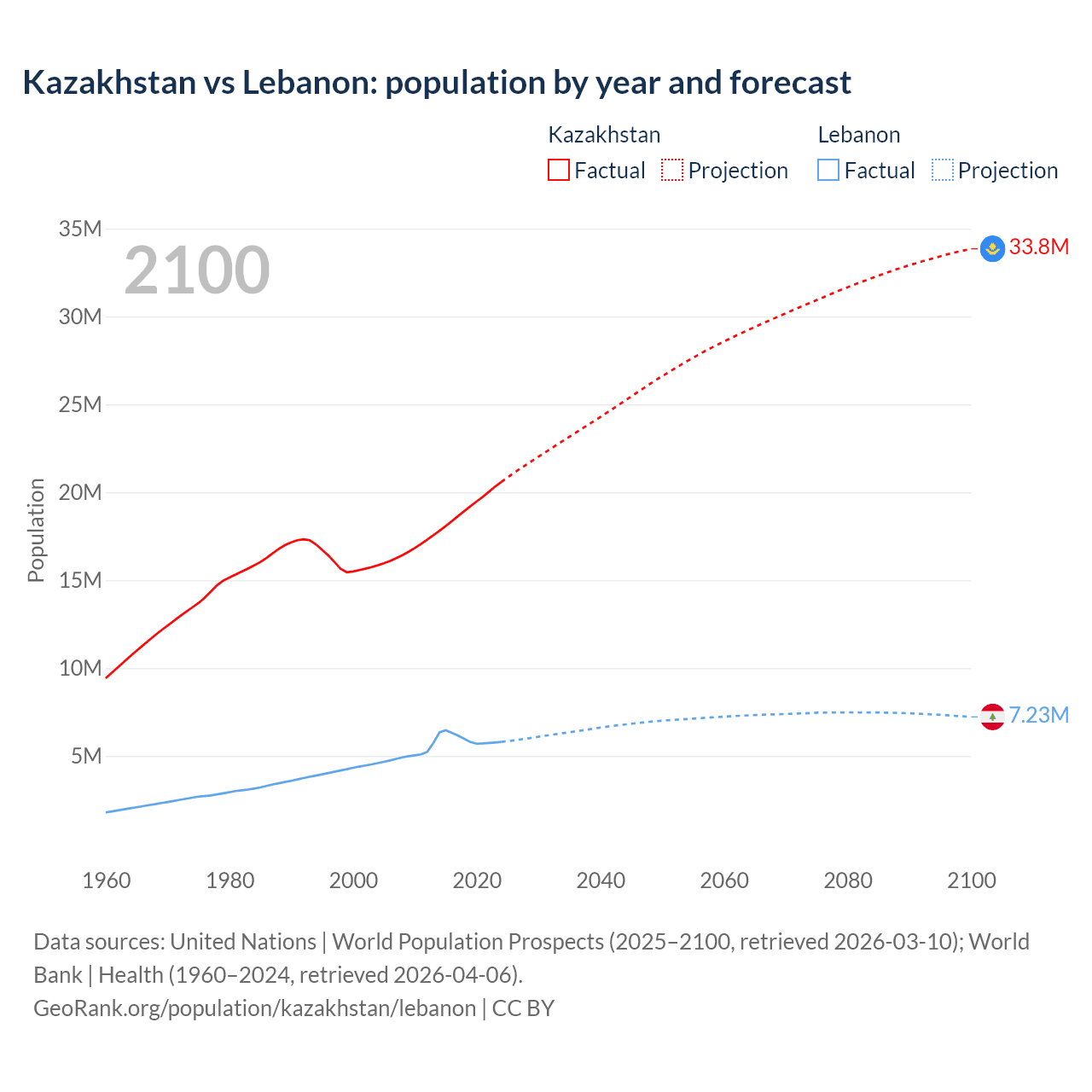 Kazakhstan vs Lebanon: population by year and forecast